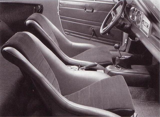 In addition there's a tank quick-locking mechanism (as with the Fiat 850 Spider) with short, direct inlet to the tank container, leather steering wheel Abarth type Lusso as well as in series completely normal 124 and/or 128-Coupé-seats. Most buyers ordered the optionally available Cordsamt referred Recaro podseats with fourpoint belts.